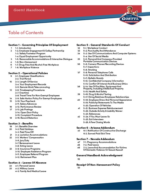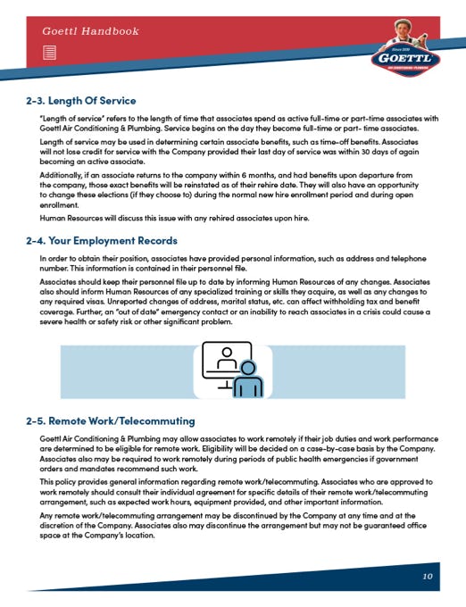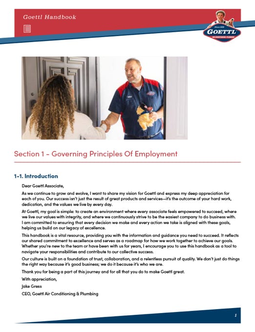 Designed in Adobe InDesign, this 48-page handbook transforms essential company information into a well-structured and brand-aligned resource for employees. I used branded photography to introduce each section with impact, while icons and typographic hierarchy broke up dense content across interior pages. To ensure efficiency and consistency, I applied paragraph styles throughout, making the document both visually appealing and easy to update. The result is a polished, functional guide that reflects Goettl’s professionalism and commitment to clarity.