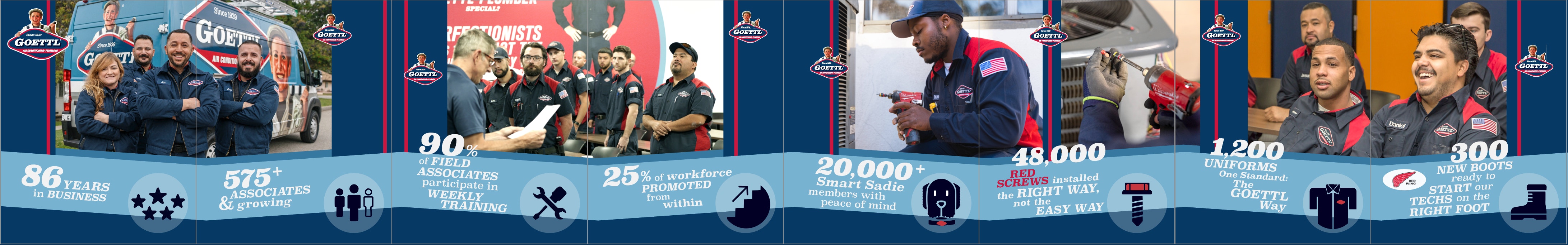 This project translated internal HR statistics into a dynamic Instagram carousel aimed at attracting new talent. Leveraging the brand’s design system, I incorporated clean layouts, bold typography, and strategically placed brand icons to visually organize data and highlight standout numbers. The goal was to make complex HR insights feel accessible and compelling, while reinforcing Goettl’s strengths as an employer. Each frame was structured to maintain visual momentum and prompt interest from prospective applicants.