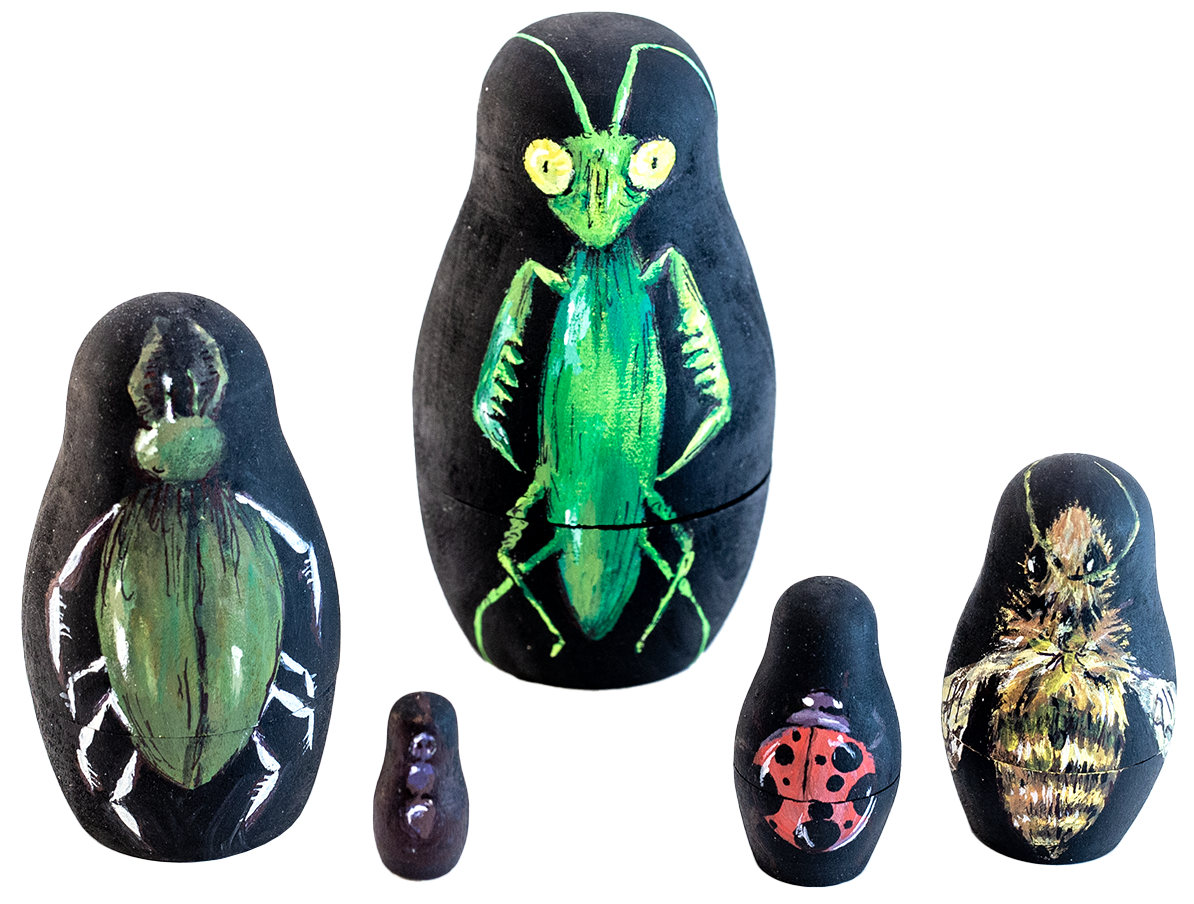 Although insects are a critical part of our ecosystem, they face significant fear from humans. I created an engaging toy that promotes insect awareness based on the classic nesting doll formula: "What will I find next?" The dolls are packaged in a flower bud with a viewing window to hint at what's inside. This toy is about opening to discover, and that starts